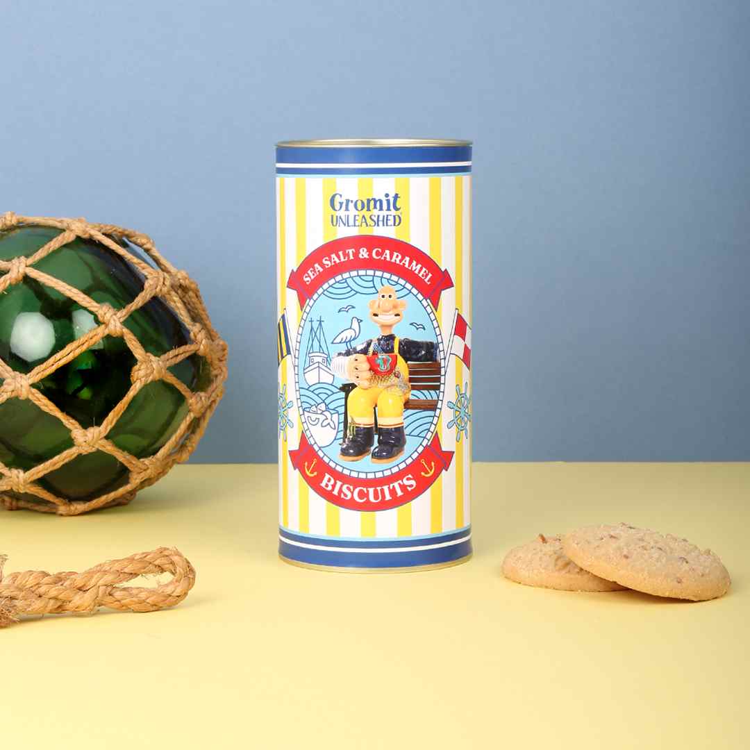 Looking for a sea-faring sweet treat to give you extra energy on the high seas? Look no further than our Fisherman's Friend sea salt and caramel biscuits. A delicious biscuit with a real bite, in a presentation tube featuring our catch of the day, Wallace from our Gromit Unleashed 3 trail. These biscuits will go down a treat, especially with a lovely brew and a couple of traditional sea shanties. You’ll be hooked!