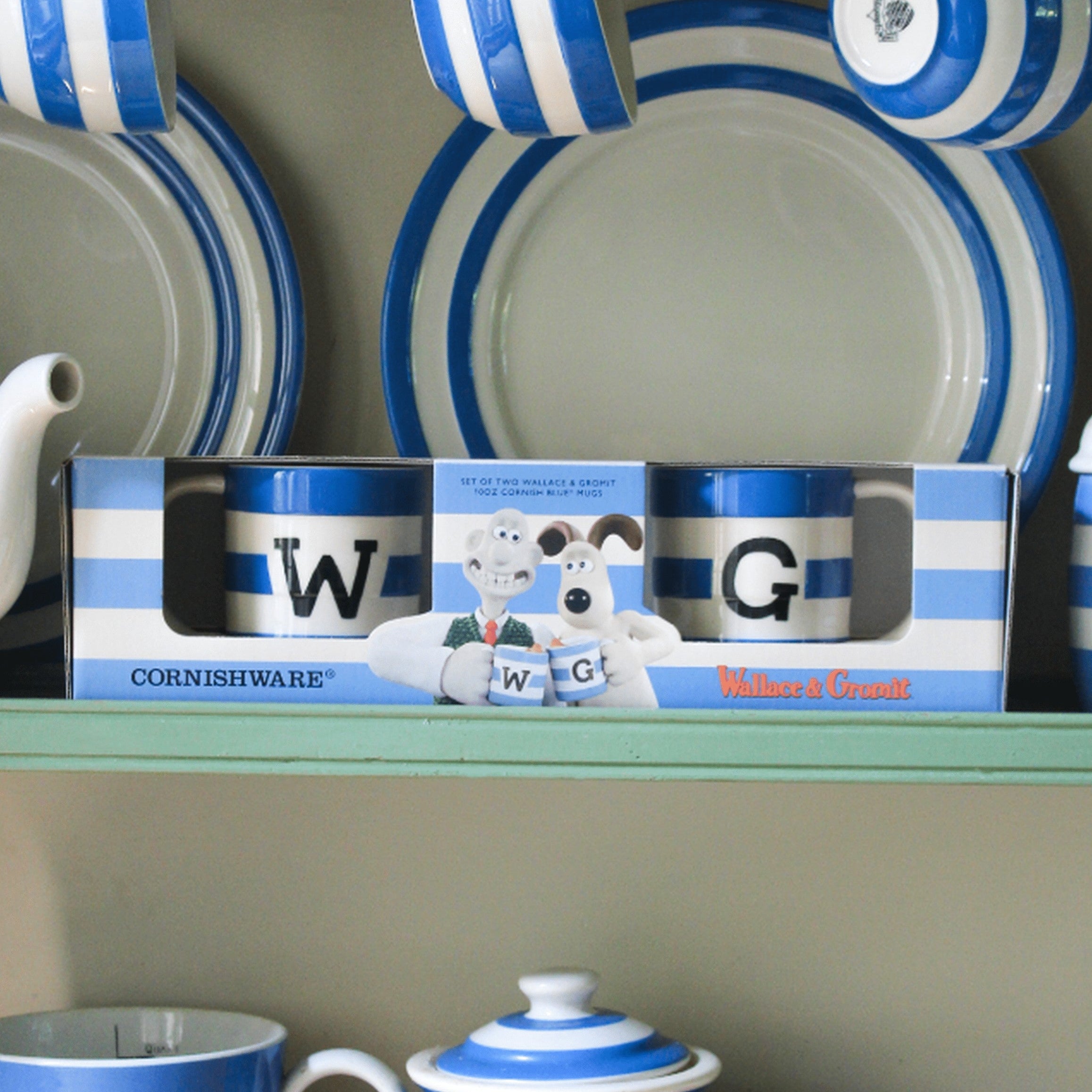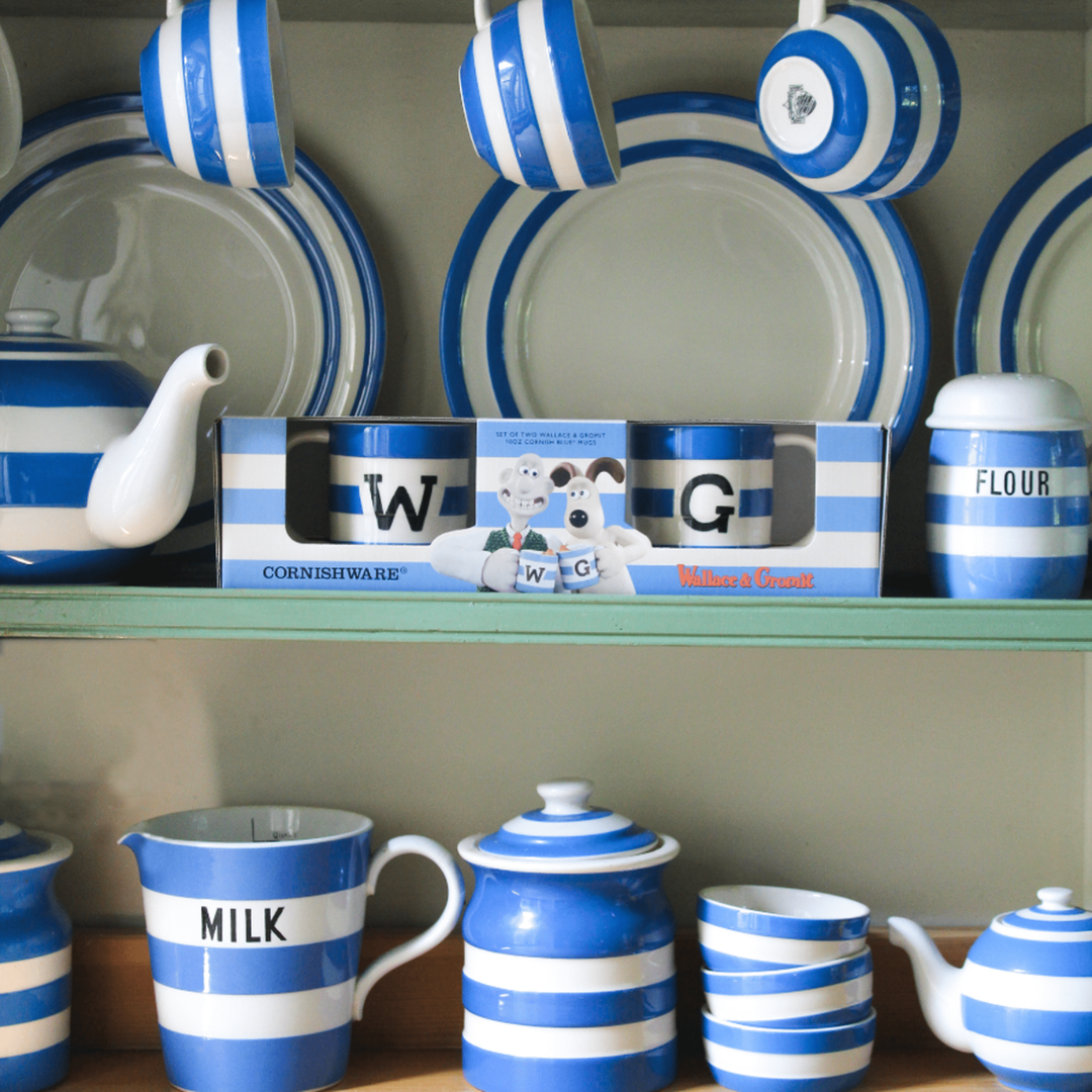 Enjoy your tea or coffee with a dash of classic British charm using this set of two, 10oz Wallace and Gromit Cornish Blue mugs. They'll add a tasteful touch of the calymation characters to your brew.