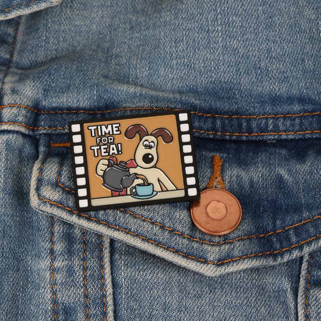 Add some Gromit charm to your collection with the Time For Tea Gromit film reel enamel pin badge. Perfect for any Wallace and Gromit fan, this adorable pin makes a fun gift to brighten up bags, jackets, or pin boards. It’s time to celebrate tea time, Wallace and Gromit style!