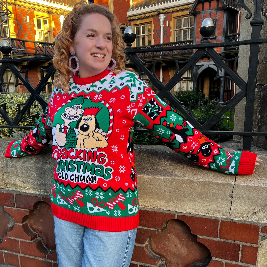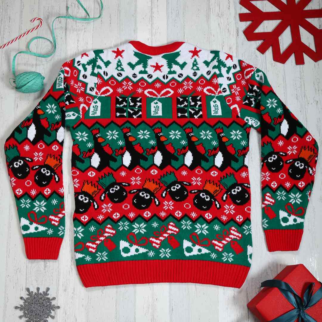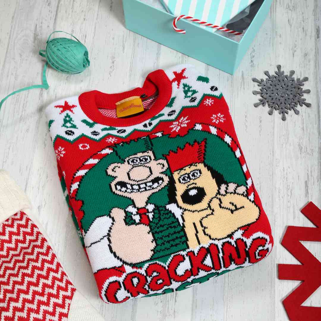 Celebrate the festive season with this cracking Christmas jumper, fresh for 2025. Featuring beloved claymation pals Wallace and Gromit with Feathers McGraw and Shaun the Sheep on the back, this cheerful design brings a touch of Aardman magic to your holiday wardrobe.