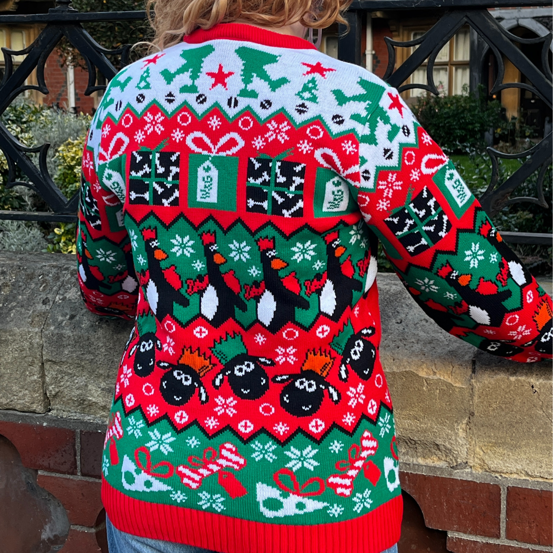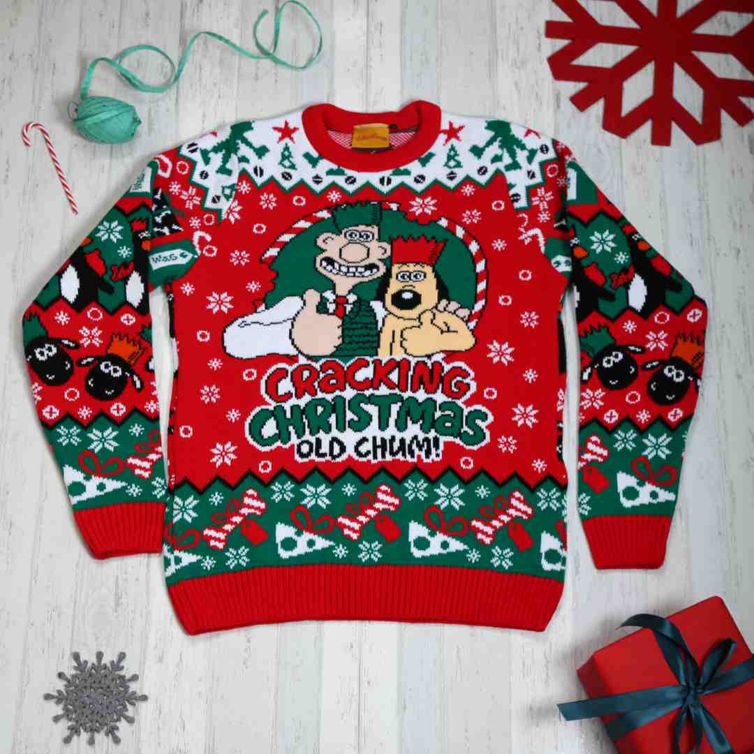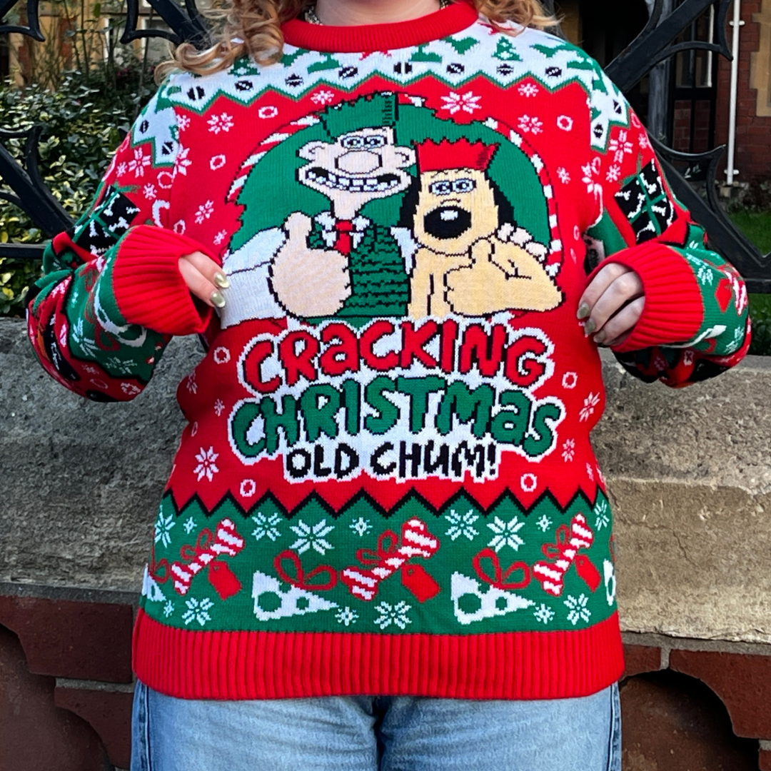 Celebrate the festive season with this cracking Christmas jumper, fresh for 2025. Featuring beloved claymation pals Wallace and Gromit with Feathers McGraw and Shaun the Sheep on the back, this cheerful design brings a touch of Aardman magic to your holiday wardrobe.