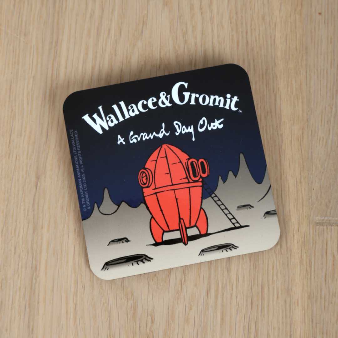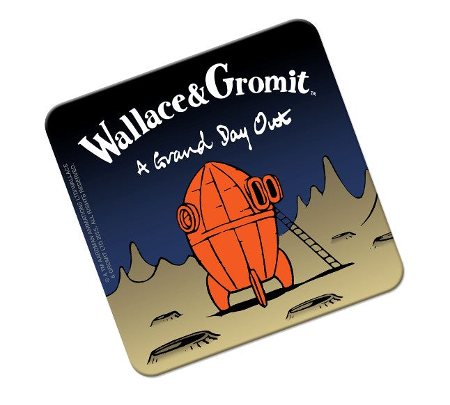 Celebrate the first Wallace and Gromit film, 'A Grand Day Out', with a coaster featuring Wallace's iconic rocket. Illustrated in a hand-drawn style, this coaster will look fantastic and keep your surfaces neat and tidy!