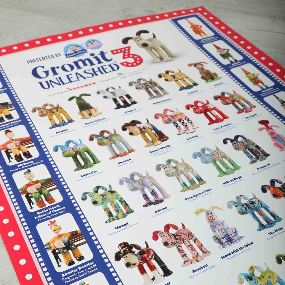 The official Gromit Unleashed poster is here! This beautifully printed A2 poster showcases all 53 sculptures from last summer's blockbuster trail.