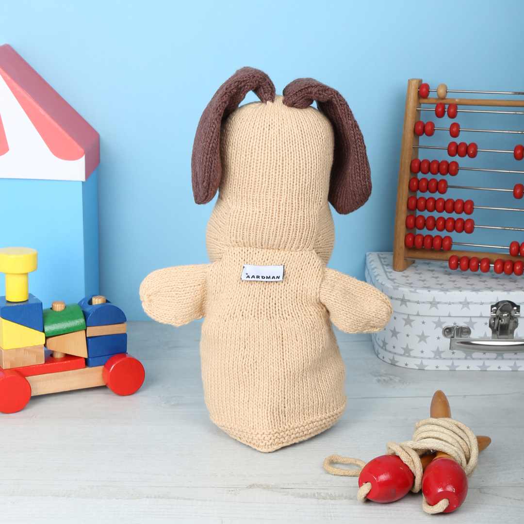 Entertain your little ones with this hand knitted cotton hand puppet. Trust everyone's favourite Beagle to spark fun stories and make young and old Aardman fans laugh.  Suitable for ages 0+, it not only looks cuddly, but it also makes the ideal gift for newborns to adults.