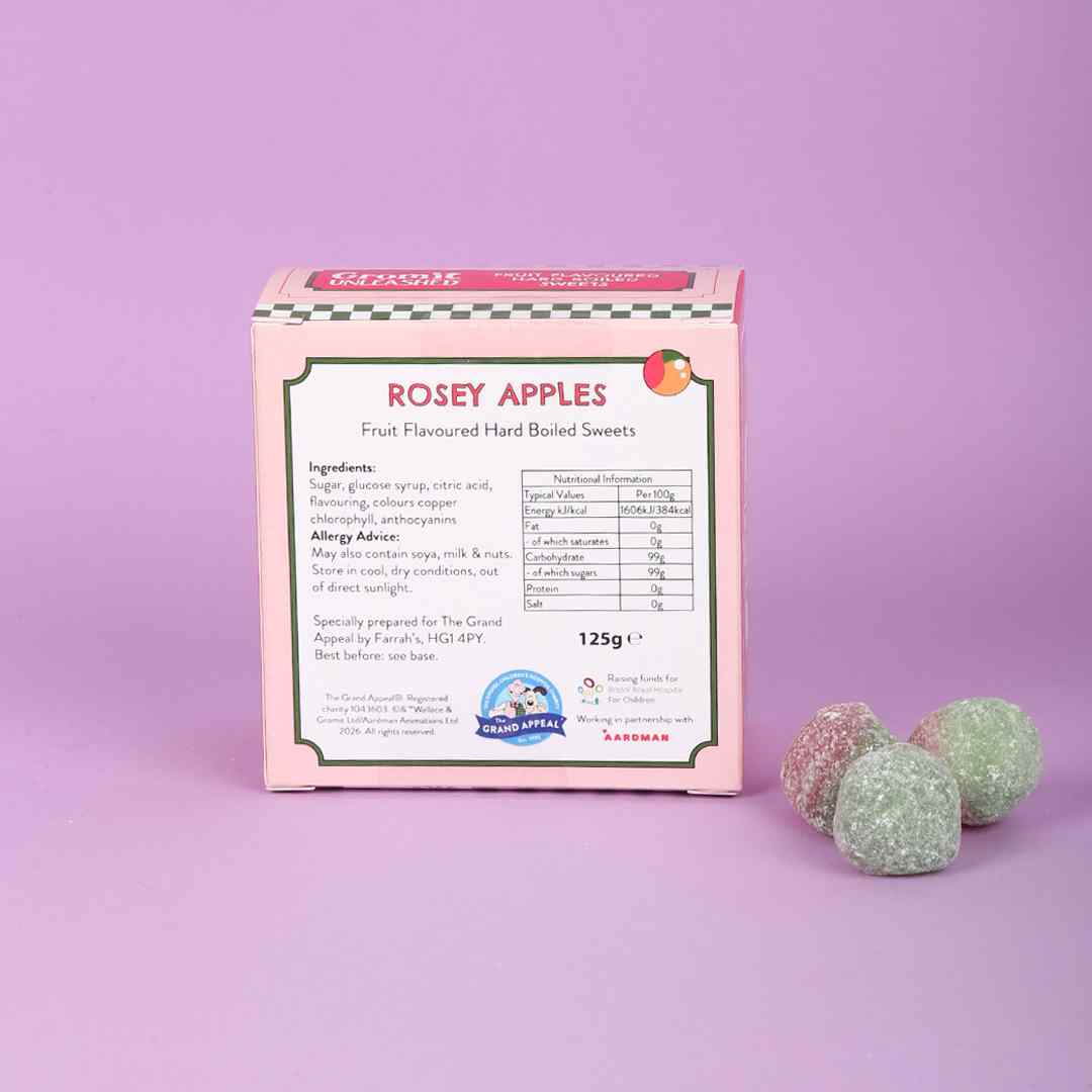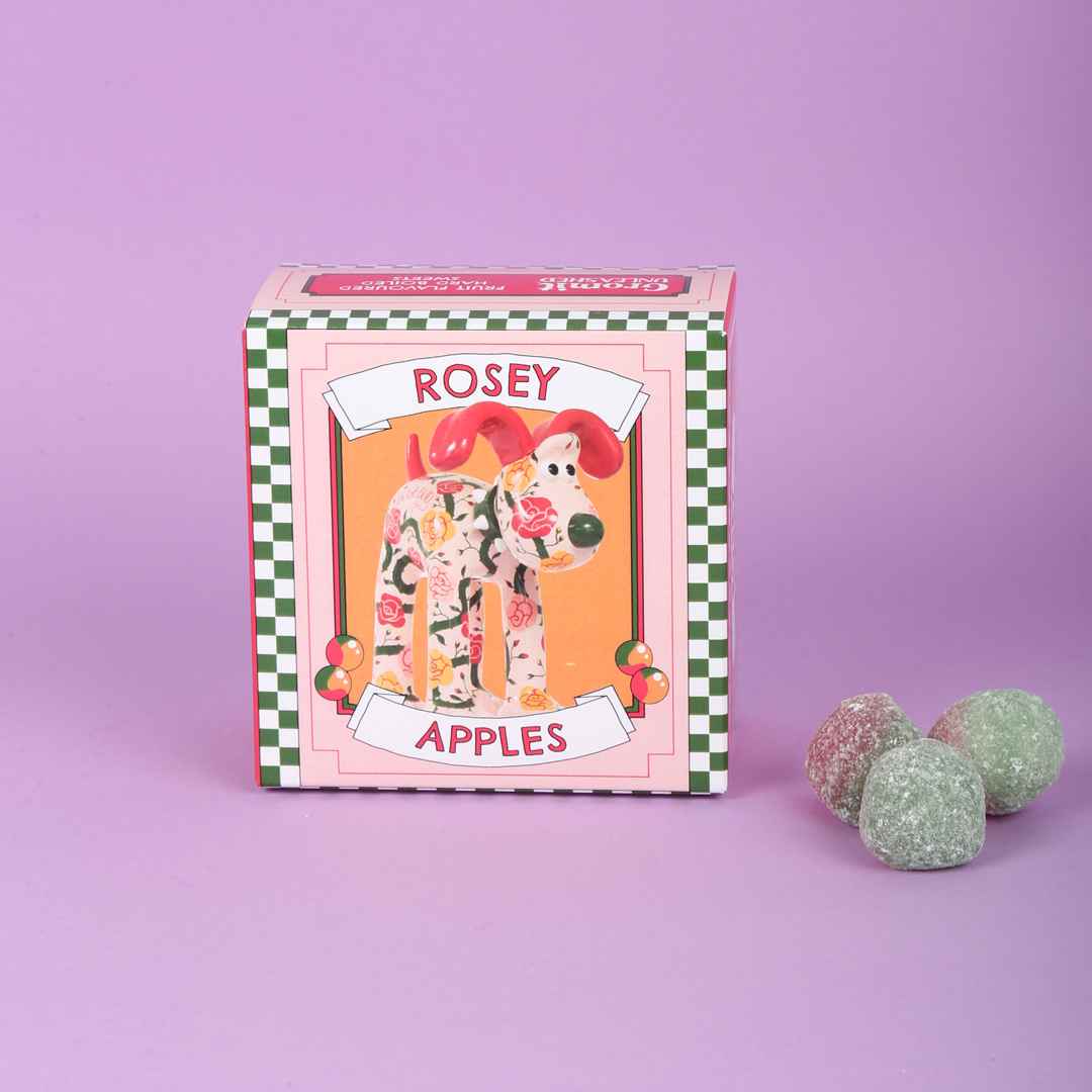 Enjoy these delightful rosey apple hard-boiled sweets, bursting with fruity flavour. Featuring Rosebud from the Gromit Unleashed 3 trail, these nostalgic sweet treats are both charming and delicious.