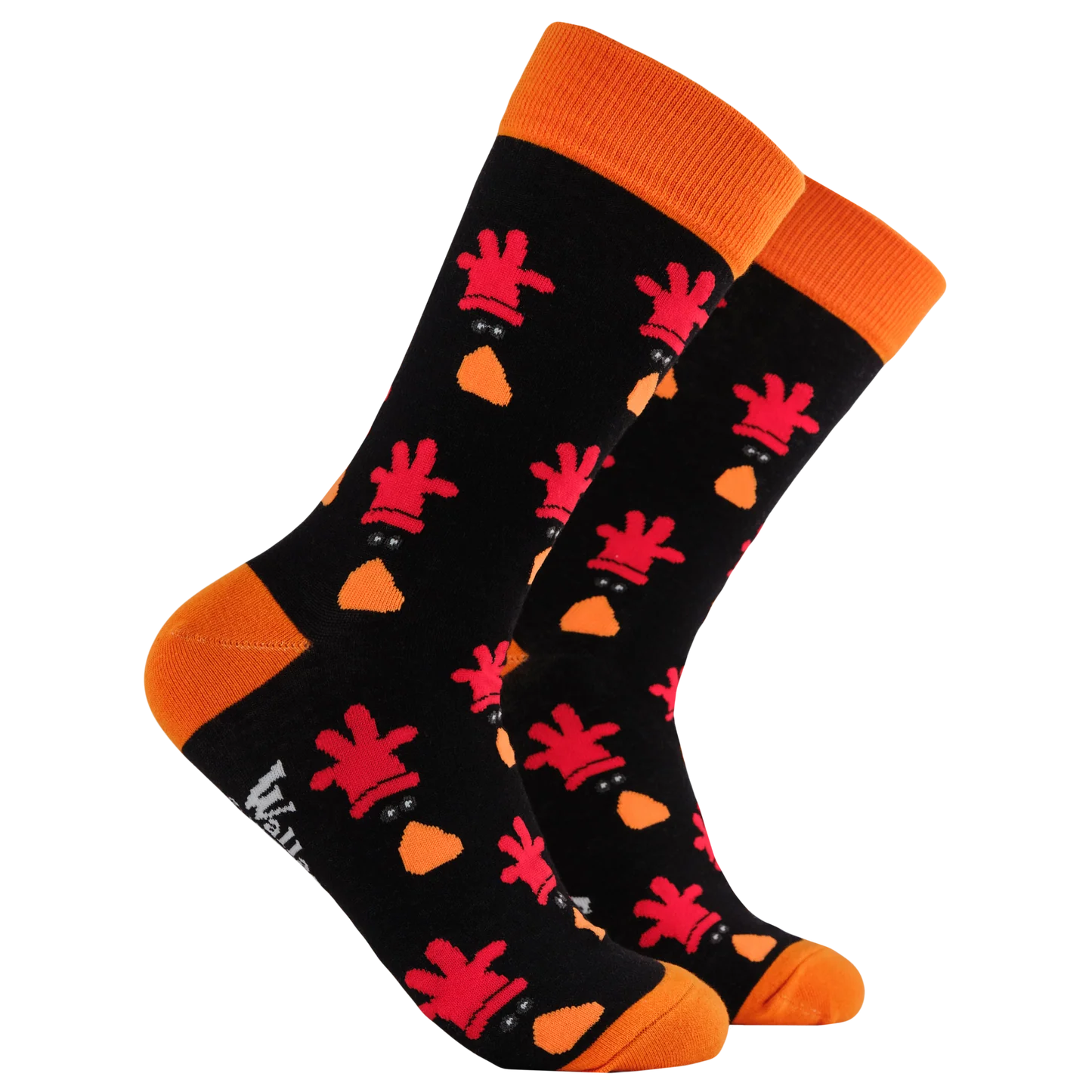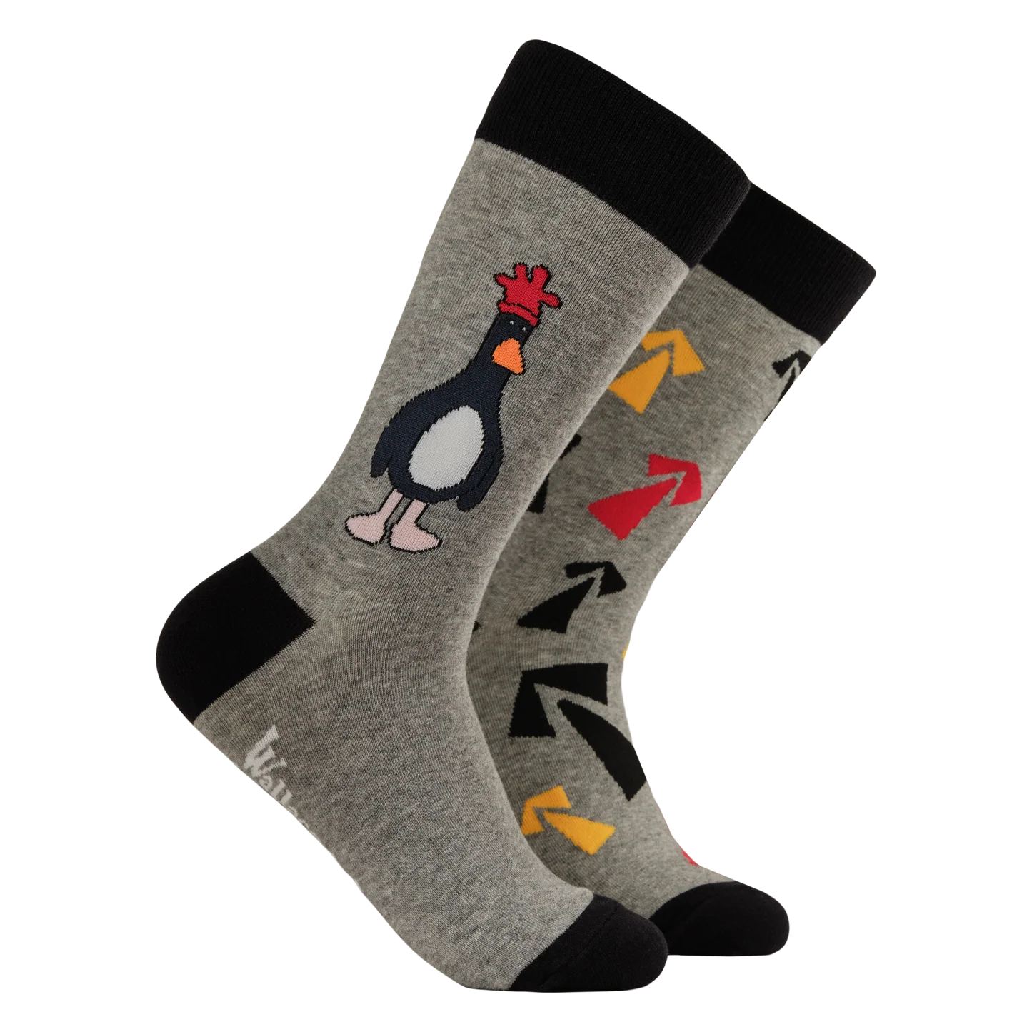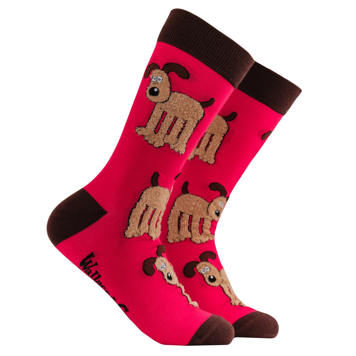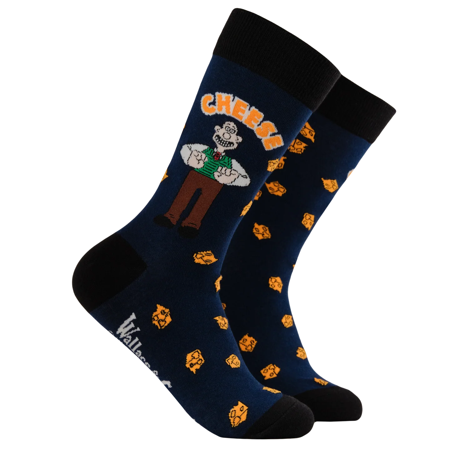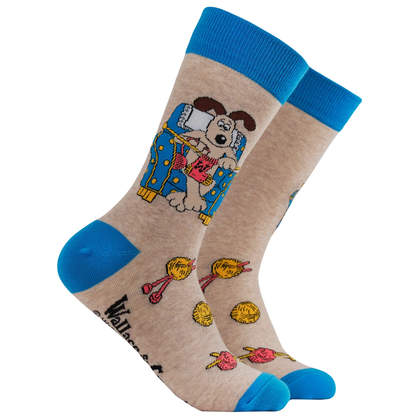 Choose your favourite pair: Gromit in his yellow raincoat, Feathers McGraw and the train from The Wrong Trousers, Wallace and cheese, Top Dog Gromit, or Shaun in his classic A Close Shave stripey jumper. Each design is available for individual selection.